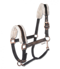 Flauschiges Halfter mit Waldhausen Fashion-Band und matten Beschlägen. Ein Highlight sind die zusätzlichen Glitzersteine auf Nasenband und Backenstücken. Weiche Polsterung aus synthetischem Fell an Genickstück und Nasenriemen. Mehrfache Verstellbarkeit an Kinnriemen und Genickstück.